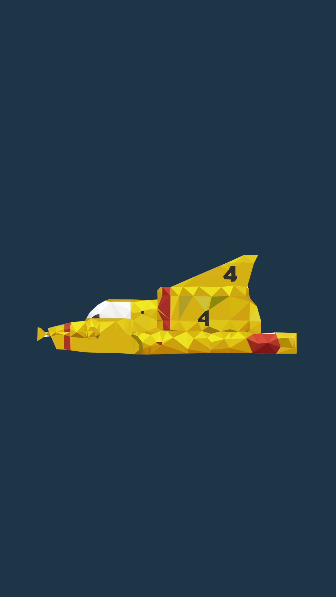 Description: A yellow submarine floating in the air with a number on it's side and a number on the side.