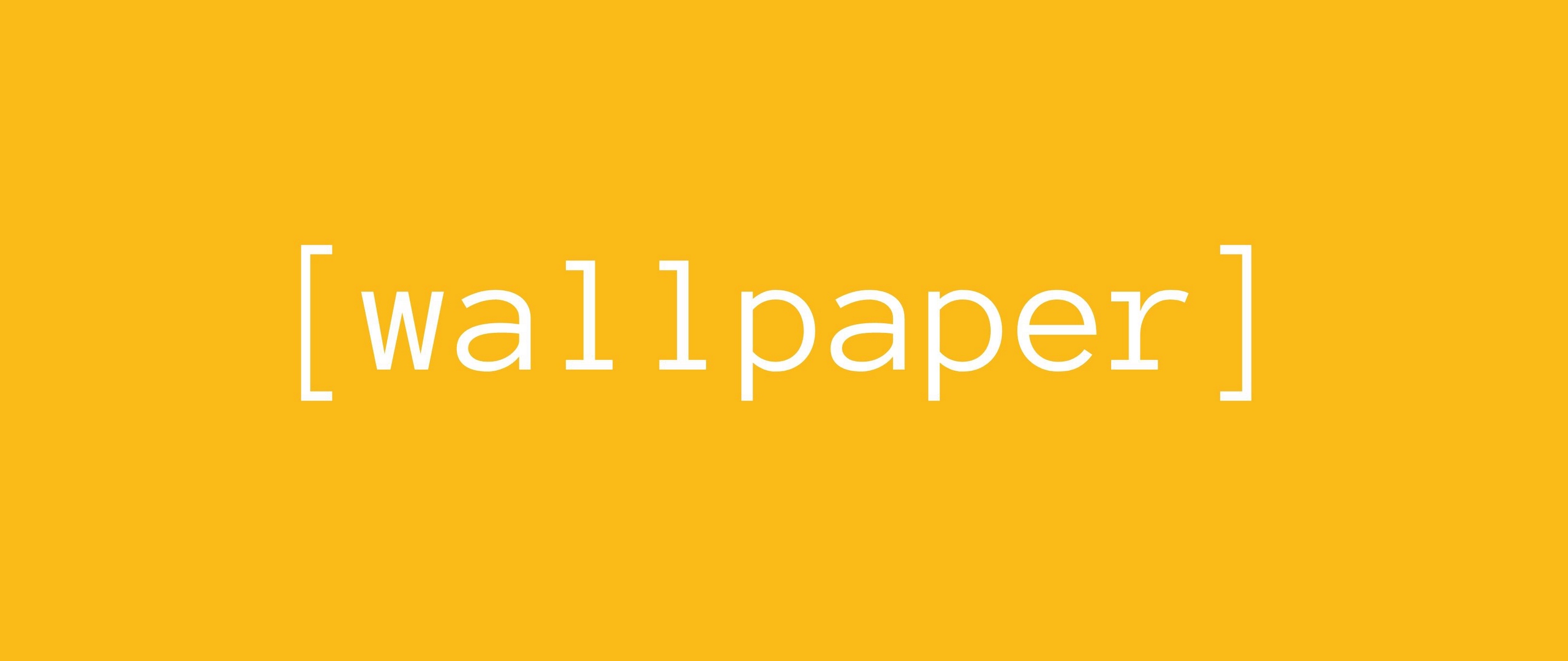 Description: A yellow background with the word wallpaper written in white on it's side and a white outline of a person holding a cell phone.