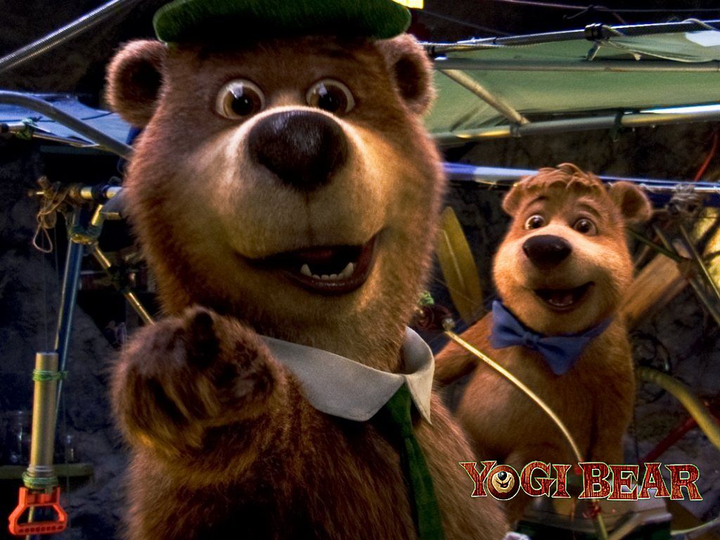 Description: A bear and a dog are in a scene from the movie yogi bear and the bear in a hat.