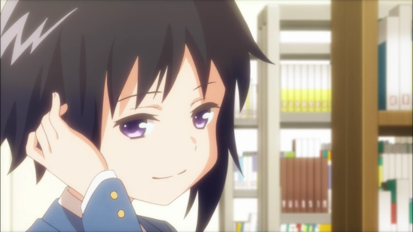 Description: A young man with black hair and blue eyes in a library looking at the camera with a serious look on his face.
