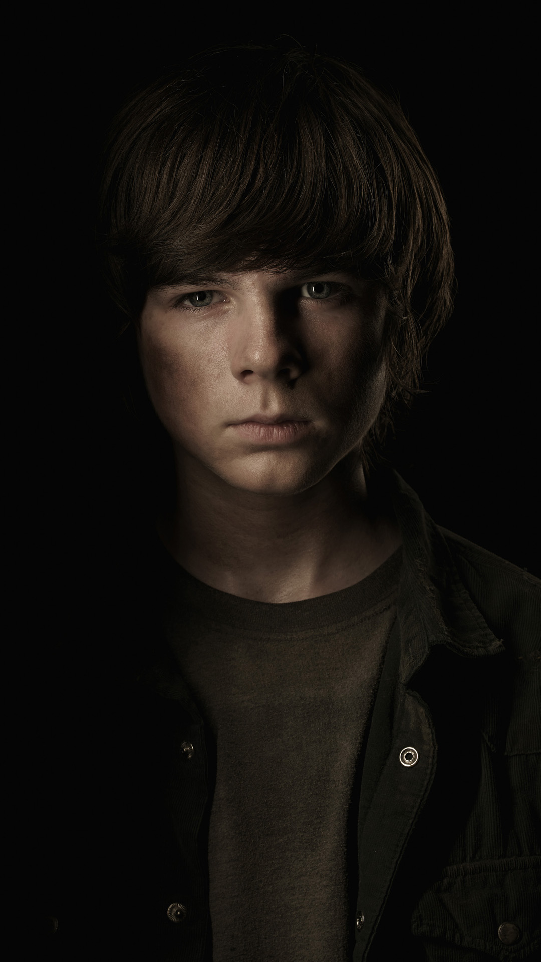 Description: A young man with a serious look on his face in a dark room with a black background and a black background.