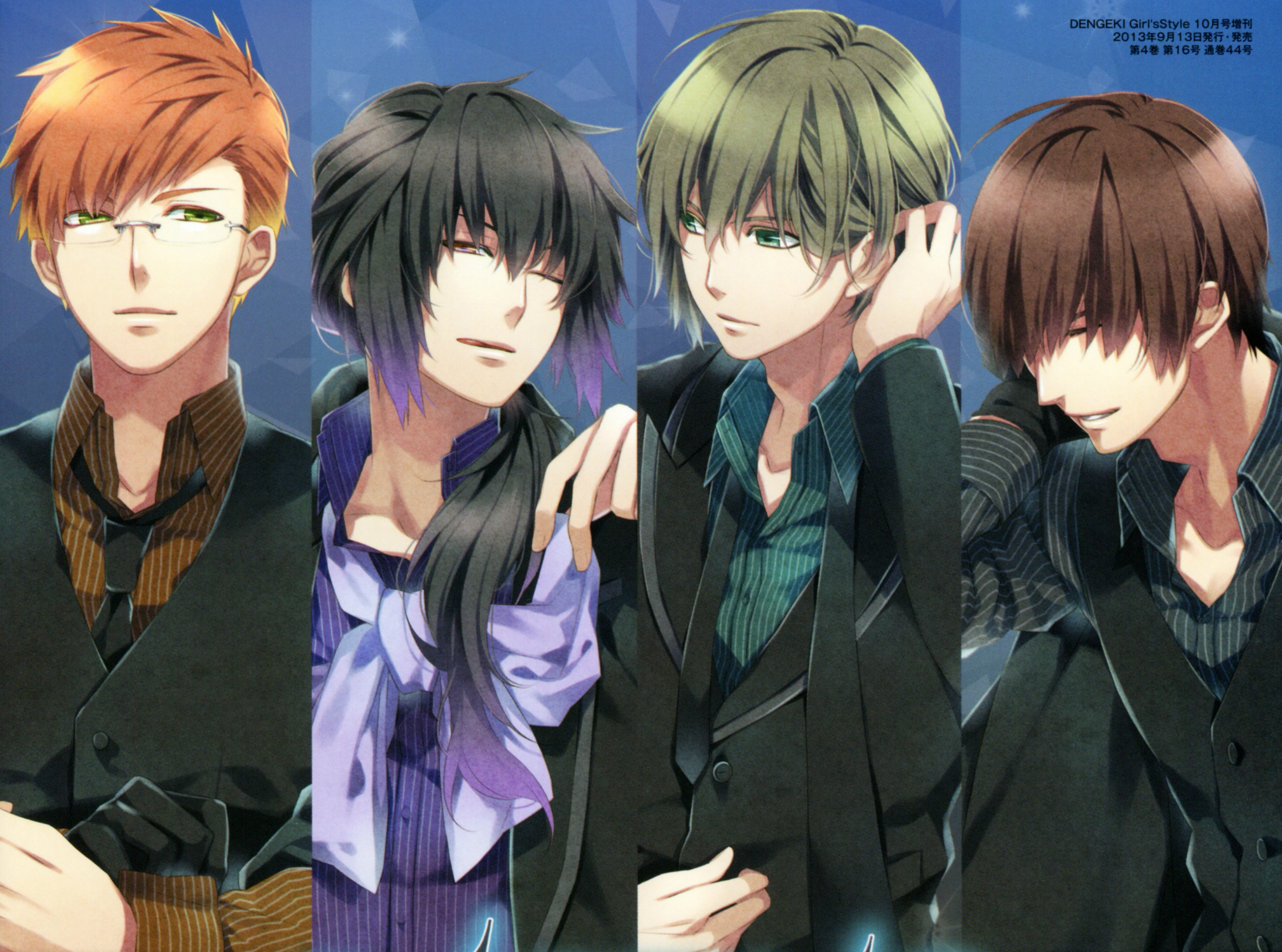 Description: A group of young men standing next to each other in front of a blue background with stars and a blue sky.