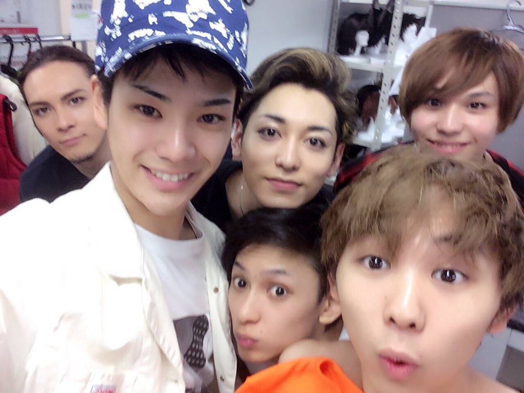Description: A group of young men standing next to each other in a room with a white wall and a blue and white hat.