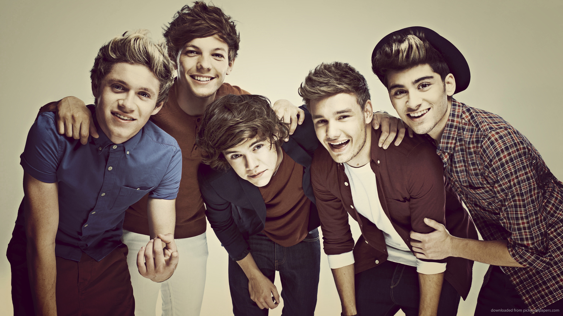 Description: A group of young men standing next to each other smiling at the camera with one man's arm around the other.