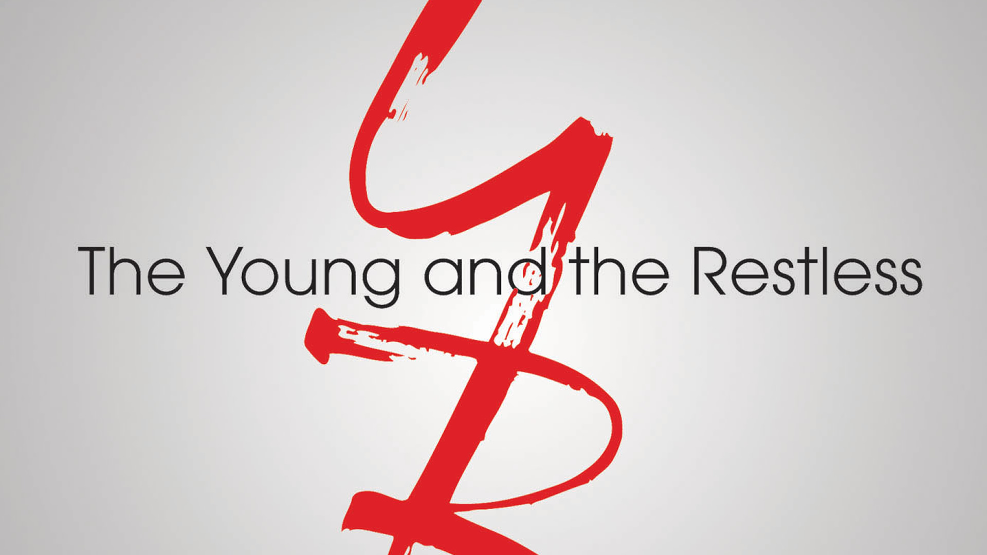 Description: The young and the restless logo with a red brush stroke on a white background with the words young and the restless.